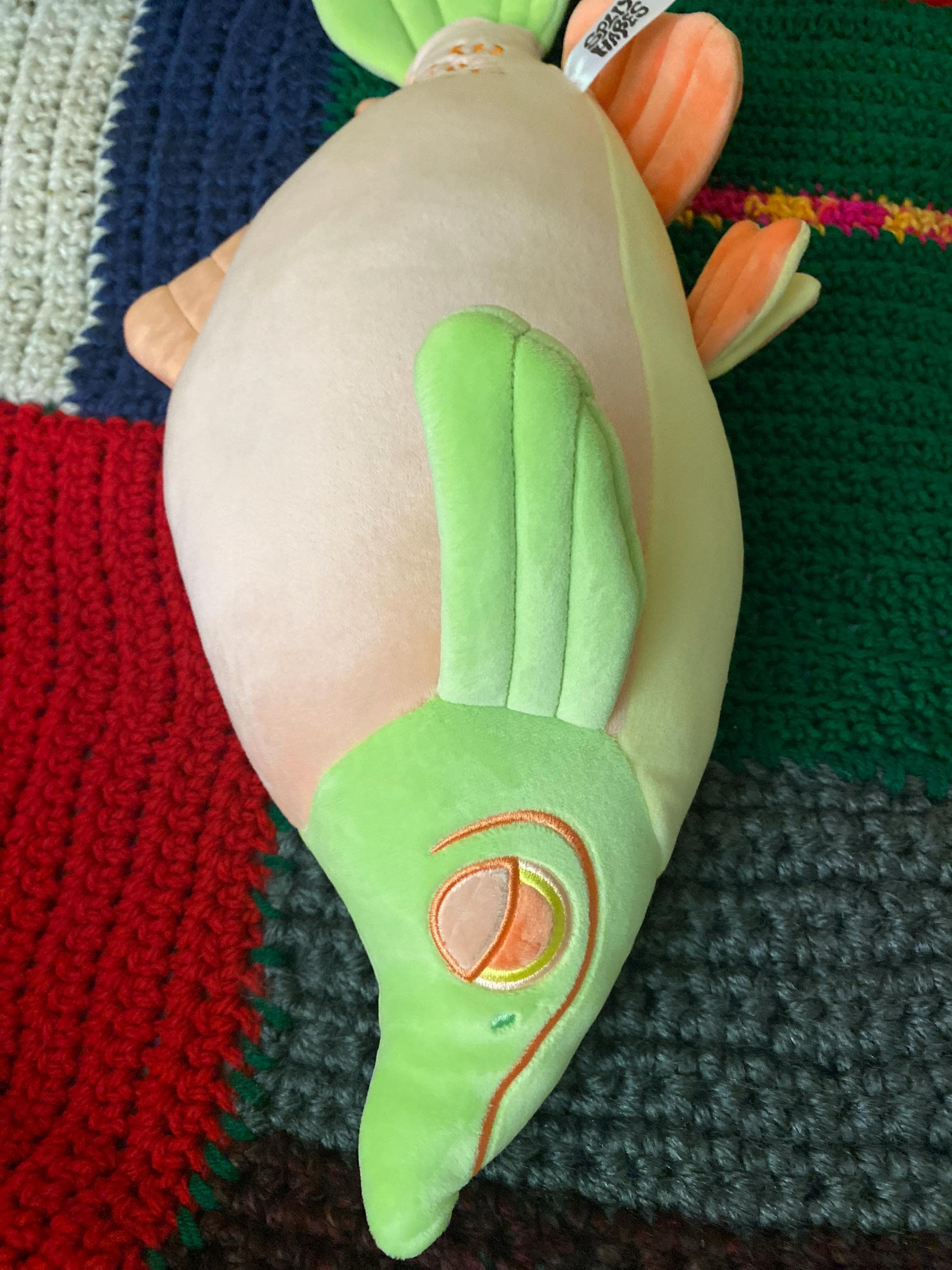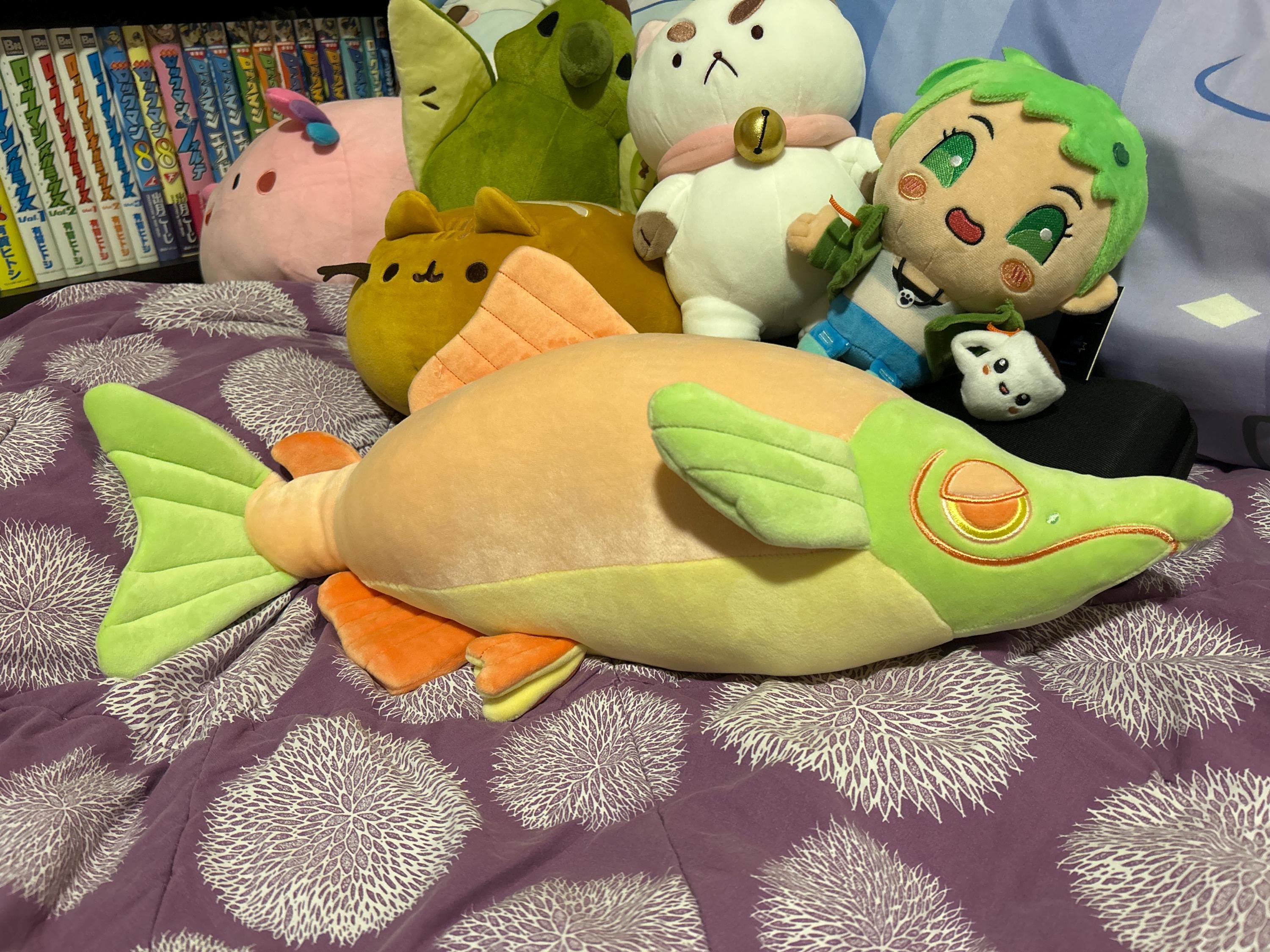 This is the coolest softest loveliest fish I have, I wanted a soft plush that I could keep on my bed and I am blown away by how soft and cuddly this salmon is… hands down amazing purchase
