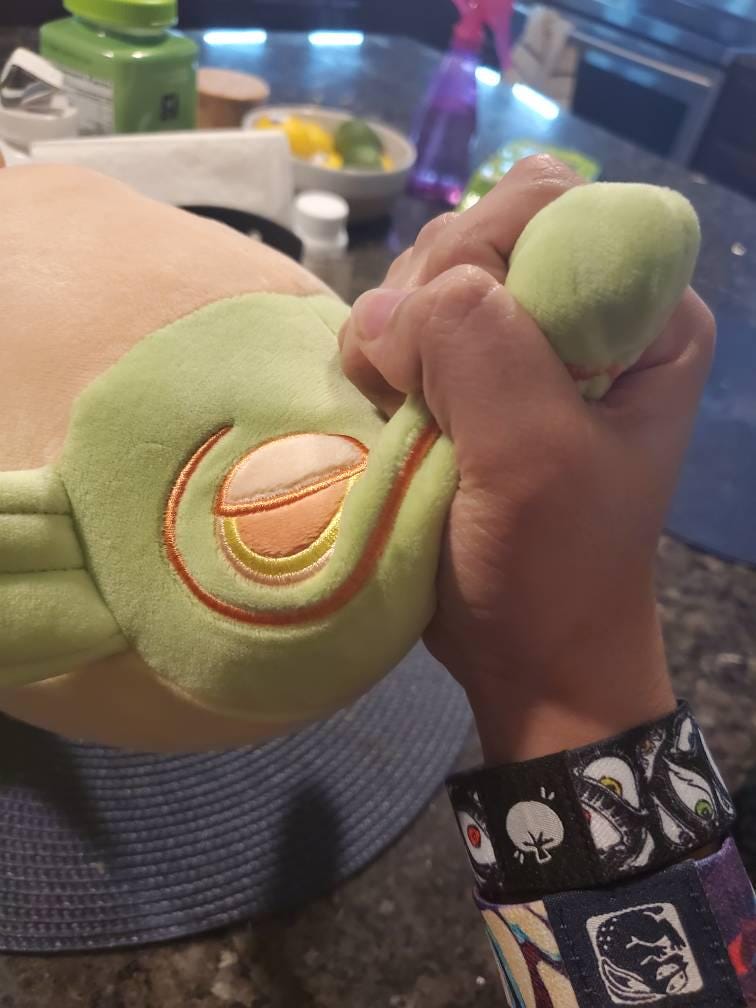 holding it as im typing. awesome quality, its lile a squishmallow but better. theres beads in the snout n tail so the tail can wiggle like its swimming. looks exactly like the pic. gonna emphasize the softness again bc its my new fav pillow. im going to buy the eel now